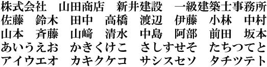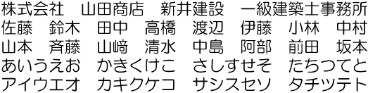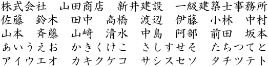 特に決まった書体が無い場合、下記一覧表から選ぶことも可能です。